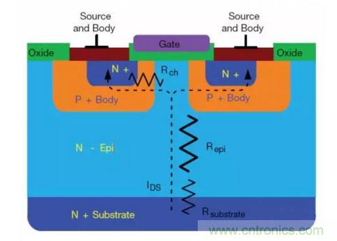 圖2:平面式MOSFET的電阻性元件