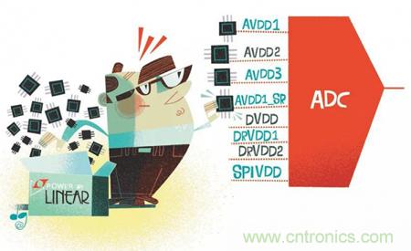 為了解電源域和電源的增長情況,我們需要追溯ADC的歷史脈絡(luò)。早在ADC不過爾爾的時候,采樣速度很慢,大約在數(shù)十MHz內(nèi),而數(shù)字內(nèi)容很少,幾乎不存在。電路的數(shù)字部分主要涉及如何將數(shù)據(jù)傳輸?shù)綌?shù)字接收邏輯——專用集成電路 (ASIC) 或現(xiàn)場可編程門陣列 (FPGA)。用于制造這些電路的工藝節(jié)點幾何尺寸較大,約在180 nm或更大。使用單電壓軌(1.8 V )和兩個不同的域(AVDD和DVDD,分別用于模擬域和數(shù)字域),便可獲得足夠好的性能。