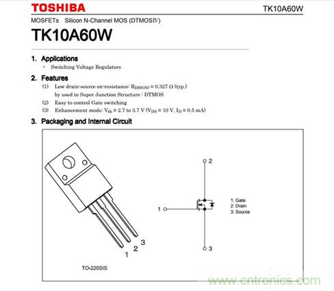 TOSHIBA東芝TK10A60W 簡略規格書。