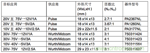 凌力爾特公司與主要的磁性元件制造商進(jìn)行了合作,以生產(chǎn)供 LT3748使用的預(yù)設(shè)計(jì)型反激式變壓器。表 1是一張縮略表,羅列了一些推薦使用的市售變壓器,制造商為 Wurth Electronics和 Pulse Engineering 公司。完整列表請(qǐng)見(jiàn) LT3748 的產(chǎn)品手冊(cè)。這些變壓器一般能夠承受 1,500VAC 的主端至副端擊穿電壓(持續(xù)時(shí)間為一分鐘)。也可以使用擊穿電壓更高的變壓器和定制變壓器。