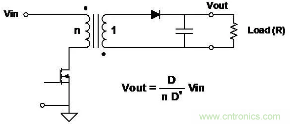 ■如降壓-升壓電路一樣工作,但是電感有兩個繞組,而且同時作為變壓器和電感。