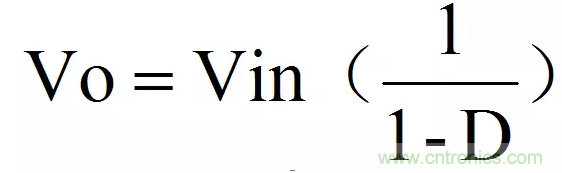 ■輸出電壓與負荷比(D)之間的關系不如在降壓調整器中那么簡單。在連續導電的情況下: