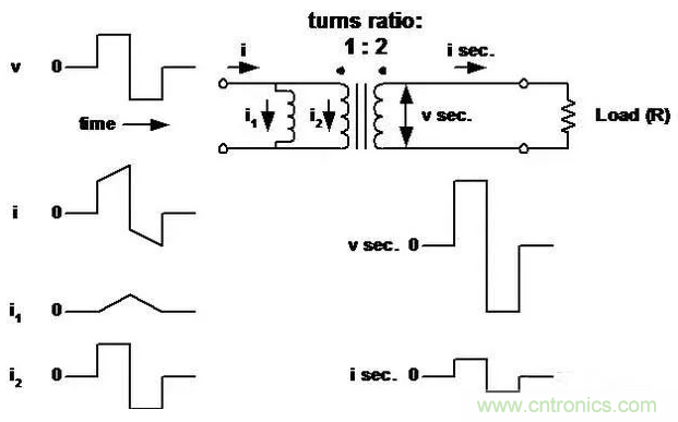 ■變壓器看作理想變壓器,它的初級(磁化)電感與初級并聯。