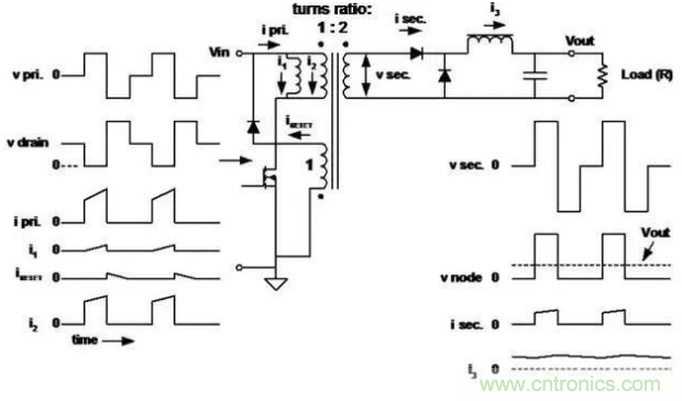 ■在每個開關周期中必須對變壓器磁芯去磁。常用的做法是增加一個與初級繞組匝數相同的繞組。
