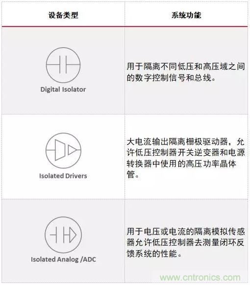 表1:電動車輛系統(tǒng)中使用的隔離元器件