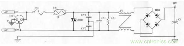 當雷極發生時,可能會損壞零件,進而影響Power的正常動作,所以必須在靠AC輸入端 (Fuse之后),加上突波吸收器來保護Power(一般常用07D471K),但若有價格上的考量,可先忽略不裝。