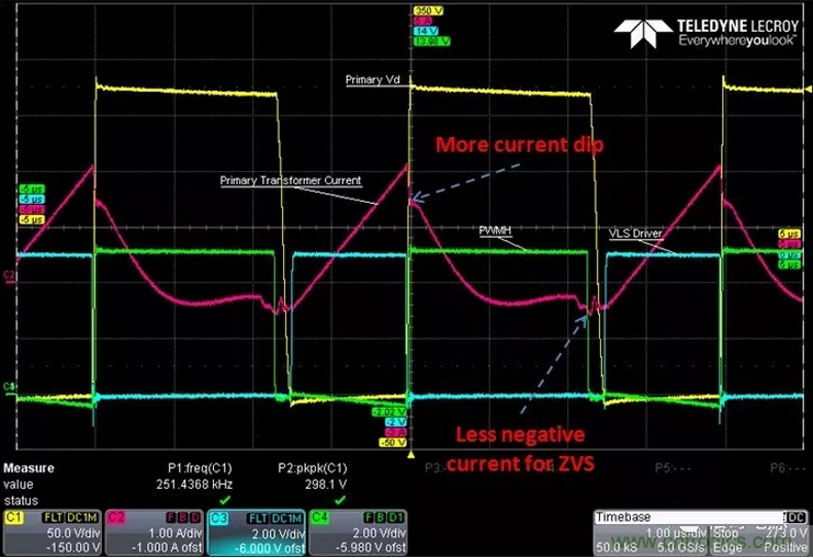 非對稱反激變換器可以在更寬的負載范圍內,工作在軟開關模式,因此在較輕的負載條件下可以獲得更高的效率。