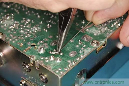 接下來修剪多余的電線至焊點處,并用助焊劑清潔劑對焊點進行清理。
