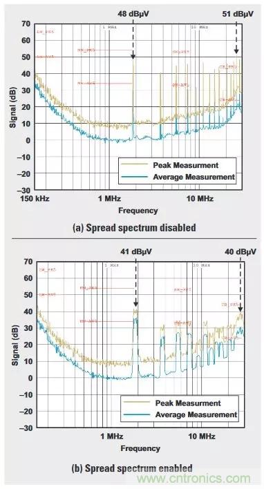 ·增加使用擴頻技術來擴散噪聲能量,從而降低其在整個頻譜上的峰值;