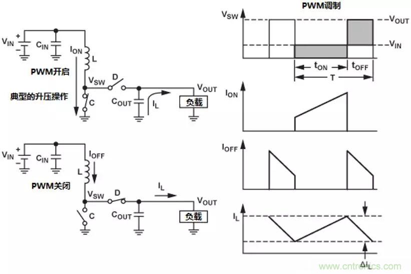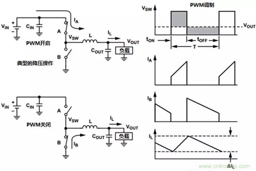 占空比 = 開關(guān)開通的時間/ 工作同周期。開通和關(guān)閉開關(guān)影響了電感能量的儲存和釋放,從而影響輸出的電壓。