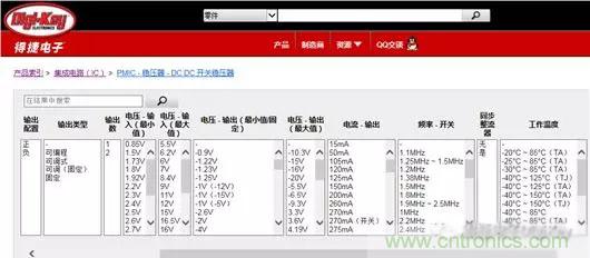 圖5:Digi-Key官網(wǎng)上的降壓-升壓轉(zhuǎn)換器的參數(shù)選項