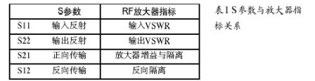 射頻電路性能通常用4個散射(S)參數來表征。術語“散射”隱含著損耗的意思。反射,即散射參數S11與S12會減少有用的信號,反向傳輸S12從負載處返回輸出功率,只有正傳輸S21是有用的散射參數。設計射頻電路就是要減少S11、S22與S12而提高S21。射頻放大器小信號交流參數可從S參數推得,兩者的關系見表1,這些指標是頻率依賴的。