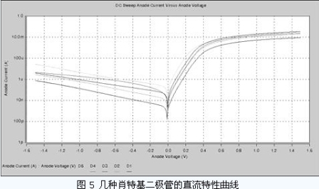 圖4 所示是在UMC 0.18um CMOS 工藝下設計的幾種肖特基二極管的版圖。它們的直流特性測試曲線如圖5 所示。從直流特性的測試結果