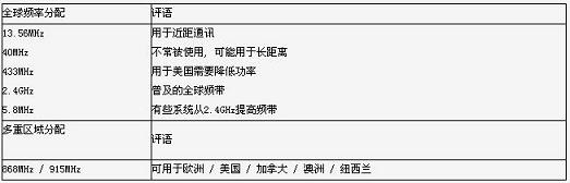 SRD無(wú)線(xiàn)系統(tǒng)的設(shè)計(jì)者在選擇無(wú)線(xiàn)通信頻率上需要格外小心。在大多數(shù)的情況下,此選擇被侷限于頻譜中容許免執(zhí)照使用的那些部份,而前提是必須符合使用上的特定規(guī)格與條件。表一所列為全球可使用的頻帶。