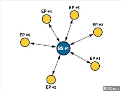 ADI目前正在更新其ADIismLINK(2.0版)協(xié)定軟體,這套軟體可適用于任何的ADF702x傳送接收器。此一針對(duì)全球次1-GHz頻帶使用而設(shè)計(jì)的協(xié)定,採(cǎi)用了新版的歐洲法令,并以圖5中所示的星狀網(wǎng)路(高達(dá)255個(gè)端點(diǎn))為其基礎(chǔ)。
