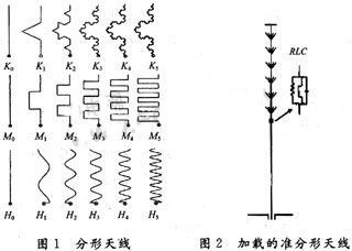 由于單純的RLC加載對小型化天線設計具有局限性。在保證一定效率的前提下,要進一步減小單極子天線的尺寸,還需要做進一步的研究。其中彎折線天線和分形天線是適應設計發(fā)展的又一技術方法。如圖1所示。