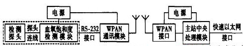 基于WPAN的脈搏血氧飽和度檢測儀的系統結構如圖1所示。