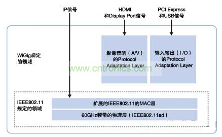 WiGig雖然是最后出現的,但作為非壓縮方式的有力候補,其存在不容忽視。WiGig在60GHz頻帶的物理層及擴展了IEEE802.11的MAC層上,規定了處理HDMI和Display-Port等信號的擴展標準(圖4)。MAC層之所以與IEEE802.11標準確保了向后兼容,是因為設想了在平時使用WLAN,只在傳輸影像等時使用60GHz頻帶等用途。WiGig Alliance與Wi-Fi Alliance共同制定了認證計劃等,WiGig將來還有可能會與WLAN整合。