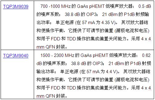 最新TQP3M9039和TQP3M9040目前已投產,可提供樣片。