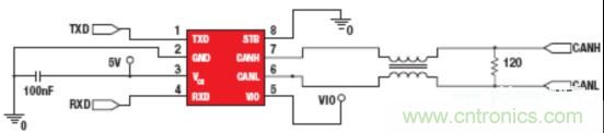 此外,當CANH和CANL線路在顯性和隱性狀態之間變換時,它們之間的變換時間和定時偏移需要良好匹配,以限制出現在高頻頻帶內的共模噪聲。