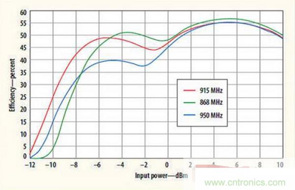 圖1顯示了Powercast P2110 Powerharvester接收器在多個頻段的性能,包括中心頻率為915MHz的工業(yè)-科學(xué)-醫(yī)療(ISM)頻段。