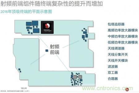 一方面,高端智能手機(jī)不斷推陳出新,屏幕越來越大、機(jī)身越來越輕薄,這些變化直接導(dǎo)致射頻前端組件的物理空間減少;另一方面,考慮到大尺寸屏幕對電池續(xù)航的影響,射頻前端的設(shè)計要比以往更重視電源使用效率;第三,網(wǎng)速越來越快,射頻前端模塊正在變得越來越復(fù)雜。