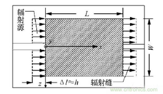 微帶貼片天線可看做一個場量在橫向沒有變化的開路諧振器[2],其輻射場由貼片長度方向兩側(cè)開路縫隙產(chǎn)生,如圖2所示