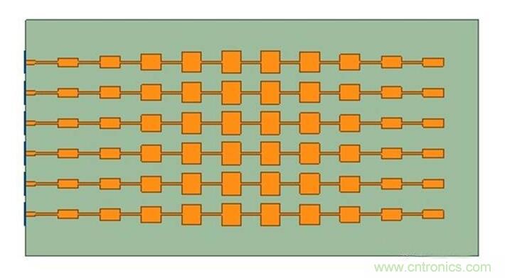 圖10功分網(wǎng)絡(luò)與圖6中面陣連接成如圖11的仿真模型