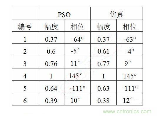 表1 仿真與PSO優(yōu)化幅相數(shù)據(jù)