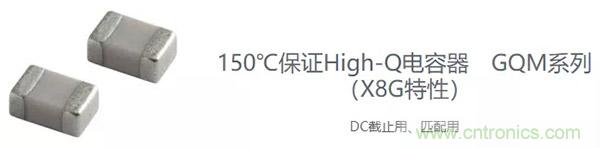 村田制作所的High-Q電容器,除傳統(tǒng)125℃保證品(C0G特性),又將150℃保證品(X8G特性)新增到產(chǎn)品陣容。通過降低DC截止用、匹配用電容器周邊溫度的制約,可提高設(shè)計(jì)自由度。
