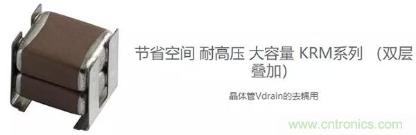 村田制作所將通過使用雙層疊加MLCC,獲得小占用面積大靜電容量的帶有金屬端子的電容器增至產(chǎn)品陣容。大型(2220)尺寸的片狀多層陶瓷電容器可以不用擔(dān)心由于機(jī)械壓力產(chǎn)生的裂紋和溫度循環(huán)產(chǎn)生的焊接裂紋。通過金屬端子吸收壓力,成功將風(fēng)險(xiǎn)控制到超小。通過實(shí)現(xiàn)晶體管Vdrain去耦用電容器節(jié)省空間和大容量的特性,能夠提高設(shè)計(jì)的自由度。