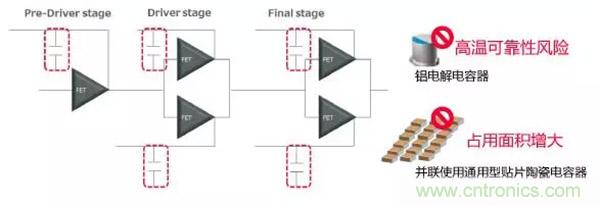 為使PA動(dòng)作穩(wěn)定,使用環(huán)境變化對(duì)于選擇大靜電容量所需要的Vdrain的晶體管用電容器產(chǎn)生很大的影響。