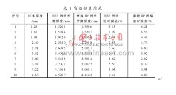 仿真實驗結果表明:利用RBF神經網絡融合能比較精確地檢測到信號缺陷深度,在學習能力和檢測精度上,RBF神經網絡均優于常規BP神經網絡,該方法的平均絕對誤差一般為2.69%,而常規BP神經網絡的平均絕對誤差為5.47%。可見,前者檢測效果明顯好于后者。