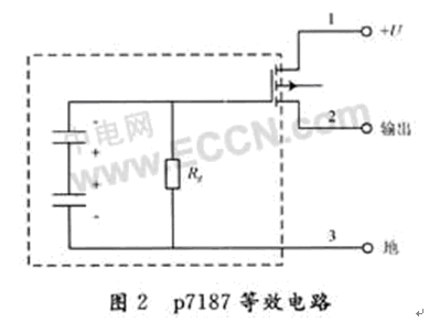 常見(jiàn)的熱釋電傳感器有p2613,p3782,p7187等。根據(jù)法拉第法則,人體的體溫約為3 7℃,輻射最多紅外線的波長(zhǎng)是10μm左右,而p7187對(duì)7~20μm范圍波長(zhǎng)比較靈敏,他采用了2個(gè)熱釋電元件PZT板,PZT板表面吸收紅外線,并在受光面的內(nèi)外各自安裝取出電荷的一對(duì)電極,能敏感的捕捉到被測(cè)物體或光源,具有很高的靈敏度。這2個(gè)受光電極反向串聯(lián),可有效地防止背景波動(dòng)以及干擾光照射時(shí)的誤動(dòng)作(一是環(huán)境變化引起的誤動(dòng)作,二是使用光調(diào)制器時(shí)的誤動(dòng)作)對(duì)傳感器的影響,當(dāng)2個(gè)受光電極同時(shí)受到紅外線照射時(shí),輸出電壓相互抵消而無(wú)輸出,只有當(dāng)人體移動(dòng)時(shí)才有電壓的輸出,輸出電壓比較精確的反映了人體移動(dòng)的情況。P7187等效電路如圖2[2]。