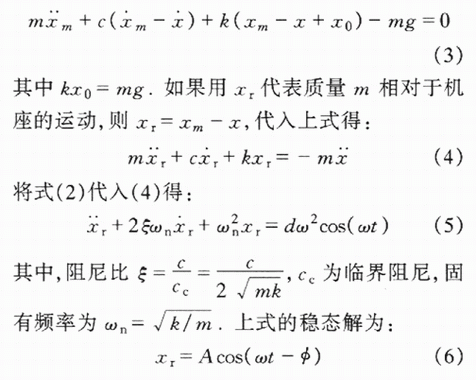 式中,ω為振動的角頻率,d為振動的幅值.由牛頓定律,該振動系統的微分方程可寫為: