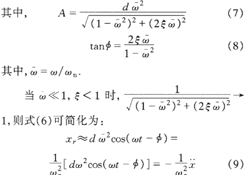 可見質量塊m相對于機座的位移xr與機座的加速度成正比.此時可以通過測量質量塊的位移變化來測量振動的加速度.