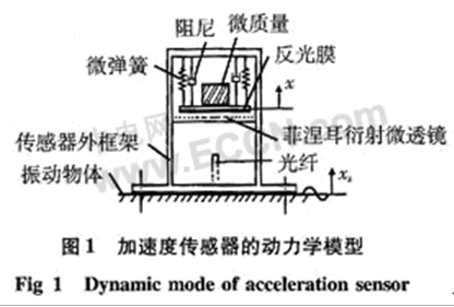 微彈簧一端與反光膜固定連接,另一端固定在傳感器的外框架上,這就形成了一個由微質(zhì)量、反光膜、微彈簧和外框架構(gòu)成的振動系統(tǒng)。