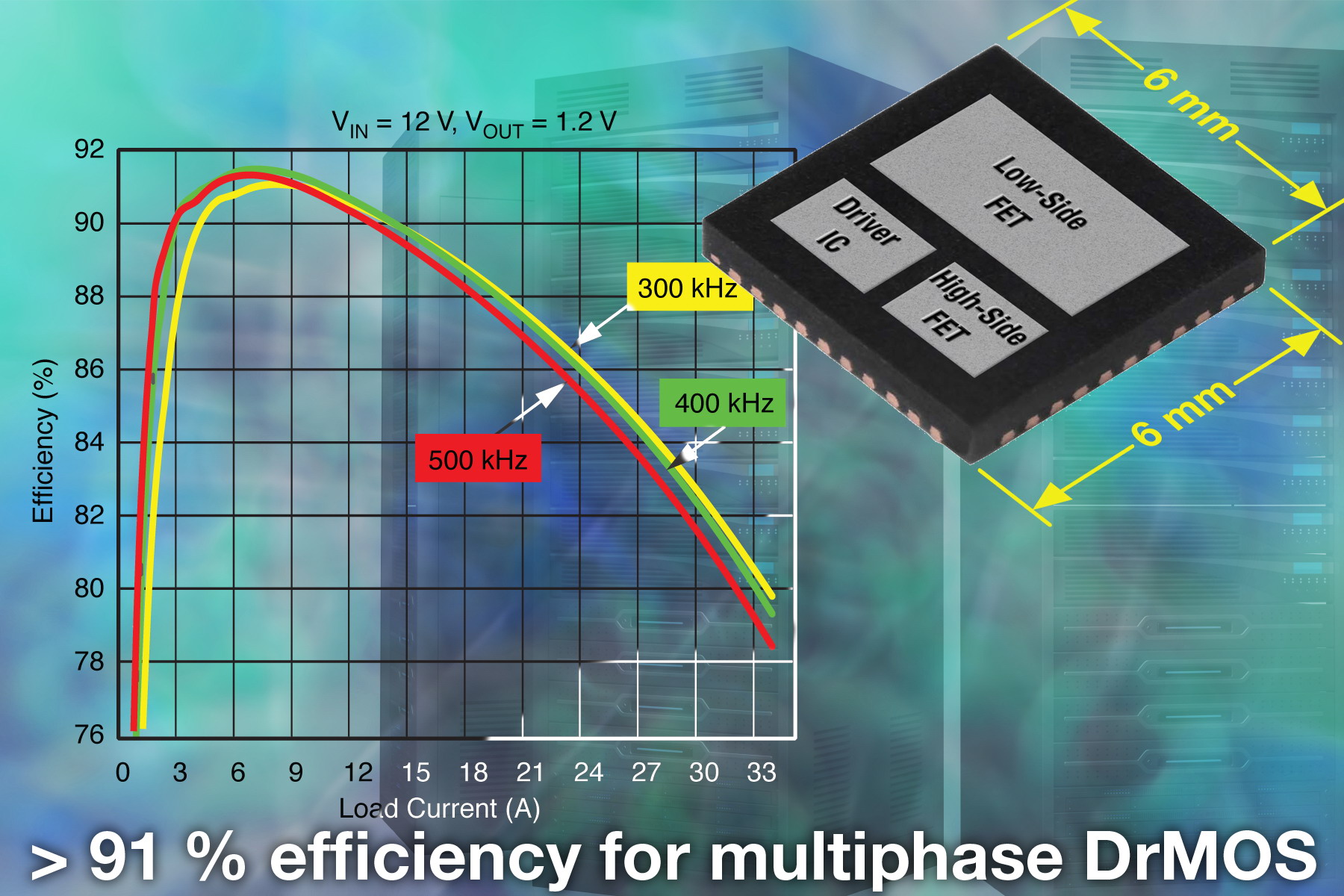 通過集成驅動IC和功率MOSFET,SiC762CD減少了功率損耗和與高頻分立功率級相關的寄生阻抗效應。設計者可以采用高頻開關以改善瞬態響應,節省輸出濾波器的成本,在多相Vcore應用中實現盡可能高的效率密度。