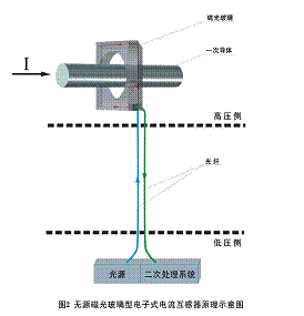 無源磁光玻璃型電子式電流互感器特點是一次傳感器為磁光玻璃,無需電源供電。其原理如下圖所示: