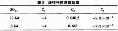 式中,RHlinear為經過線性補償后的濕度值,SORH為相對濕度測量值,C1,C2和C3為線性補償系數,取值如表3所示。