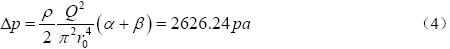 通過上式可以通過壓差來計算流量,為了平衡擴張和壓縮作用以及盡量減少能量損失,當θ=7°,φ=0.13,ζ=0.02,且流量Q為 61.1L/min,即在該管徑下流速為1m/s時,對異徑管尺寸進行優化為:a=0.4r0,b=0.8r0,a=2.9264,b=3.1109,α+β=6.0373,α/β=0.9407