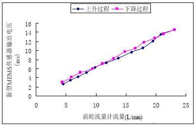 新型MEMS傳感器的標定是通過渦輪流量計來實現的。采用串聯在系統中的CLG15耐高壓渦輪流量計(名義精度為0.5%)和SO64C-1型流量測試儀進行標定。