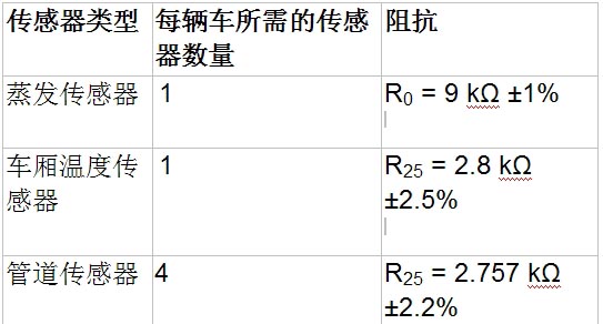 表1:Behr公司HVAC系統(tǒng)中的熱敏電阻