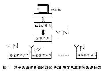 PCB板的主要功能是使各種電子零組件形成預(yù)定電路的連接,其質(zhì)量的好壞將直接影響整個(gè)機(jī)電產(chǎn)品的性能.PCB電鍍電流是影響PCB板質(zhì)量的重要因素之一,目前PBC電鍍電流的檢測(cè)是由操作人員拿著手持的監(jiān)測(cè)設(shè)備、間隔一定時(shí)間進(jìn)行檢測(cè);因此存在不少缺點(diǎn),如非實(shí)時(shí)檢測(cè),容易漏檢和誤檢,長(zhǎng)期在電鍍環(huán)境里工作會(huì)損害人體健康等.鑒于人工檢測(cè)已不能適應(yīng)當(dāng)今制造技術(shù)發(fā)展的需要,本文提出PCB電鍍電流的無(wú)線傳輸方案,即在需要檢測(cè)電鍍電流的地方安放傳感器節(jié)點(diǎn),并由監(jiān)控中心對(duì)采集的電流數(shù)據(jù)進(jìn)行統(tǒng)一實(shí)時(shí)的監(jiān)測(cè)和控制.