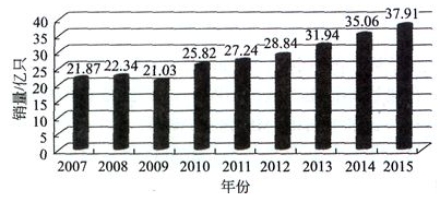 圖10 2007 - 2015年全球微型駐極體傳聲器銷量發展趨勢(2011年后為預測)