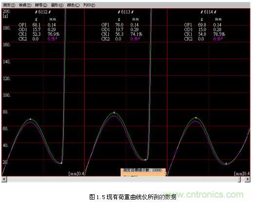 隨著電子技術(shù)與控制技術(shù)的快速發(fā)展,按鍵開關(guān)荷重位移曲線儀也要跟上時代的步伐,從一開始只能測出OF、OD和CK值發(fā)展到現(xiàn)在能同時測出23個參數(shù),有PK,CK,RPK,RLK,LK等值,可以通過設(shè)定上下限來保護(hù)儀器被壓壞荷重感應(yīng)器。最小顯示行程也從1mm發(fā)展到現(xiàn)在的0.001mm,最小顯示荷重也從10克精度到現(xiàn)在的0.01克精度,界面設(shè)定也從嵌入式發(fā)展到現(xiàn)在利用WINDOWS中文視窗畫面設(shè)定,操作簡單方便,且所有資料皆可儲存(試驗條件、荷重曲線圖、測試結(jié)果、檢查報表…等等)。