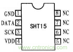 SHT15的引腳比較少.使用方便。其引腳排列如圖2所示。引腳功能如表1所示。SHT15型智能傳感器的相對濕度測量范圍是0~100%。分辨率達0.03%,最高精度為+2%RH,溫度測量范圍是—40℃一十123.8℃.分辨率為0.1℃.電源電壓范圍是+2.5V一+5.5V.響應時間小于3s。