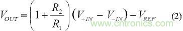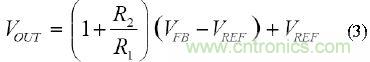 由于輸入之間的電壓等于反饋(FB)與參考(REF)端子之間的電壓時,放大器的反饋要求可得到滿足,因此,我們可將該公式重寫為
