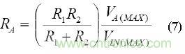 為了找到一個RA值以允許最大失調調整范圍VIN(MAX), 在給定調整電壓范圍VA(MAX)的情況下,使VOUT=0,求RA,結果得到