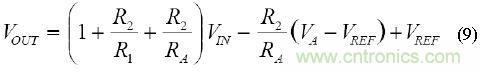 如果相對于原始等式中的VREF取VOUT和VA,則可得到相同的結果。 VA(MAX)~VREF也應替換等式(7)中的VA(MAX)。